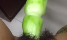 [한국야동] 오이를 존슨모양으로 깎아서 자위하는 처자